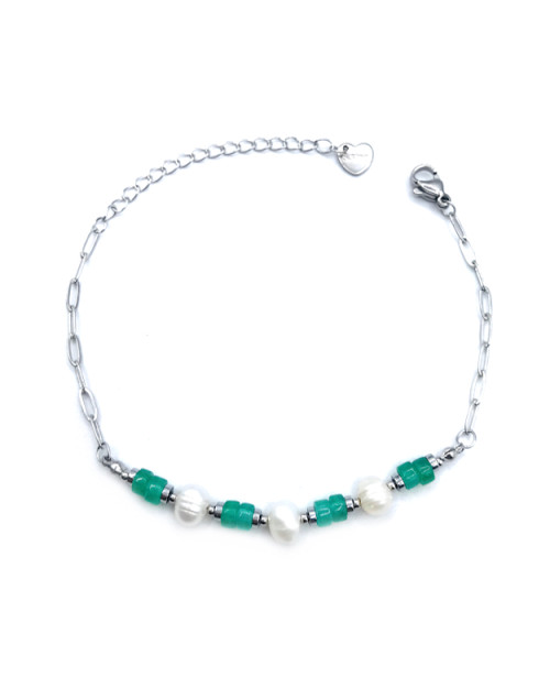 Stainless steel bracelet with pearls..